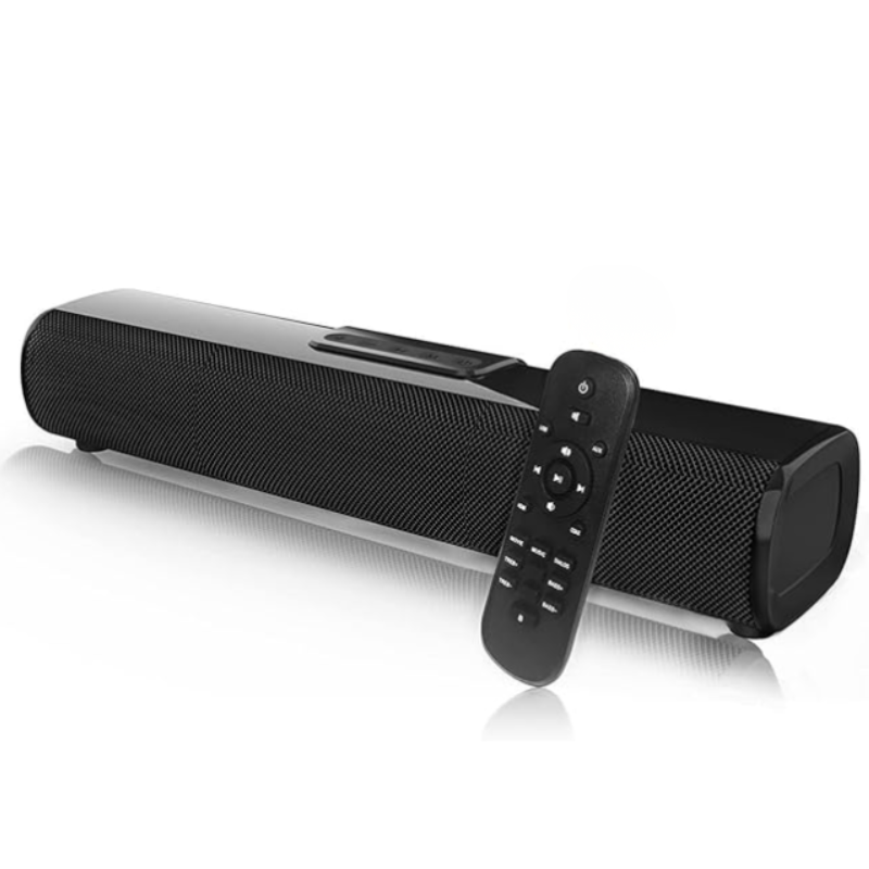 Enhance your TV audio with this ultra-slim soundbar. Deep bass, surround sound, and voice enhancement for clear dialogue. Multiple connectivity options including Bluetooth, Optical, AUX, and USB. Three EQ modes for music, movies, and news. Wall-mountable design.